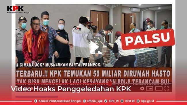 JAKARTA, detak24.com – KPK menyatakan video viral dengan narasi penggeledahan dan penemuan uang Rp50 miliar di rumah Sekjen PDI P Hasto Kristiyanto merupakan kabar bohong alias hoaks.