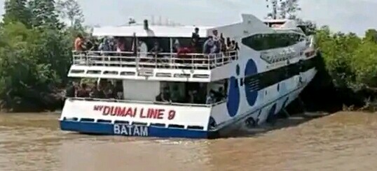 MERANTI, detak24.com - Sebuah kapal Feri MV Dumai Line 9 menabrak pantai perairan Sungai Tohor, Kecamatan Tebingtinggi Timur, Kabupaten Meranti...