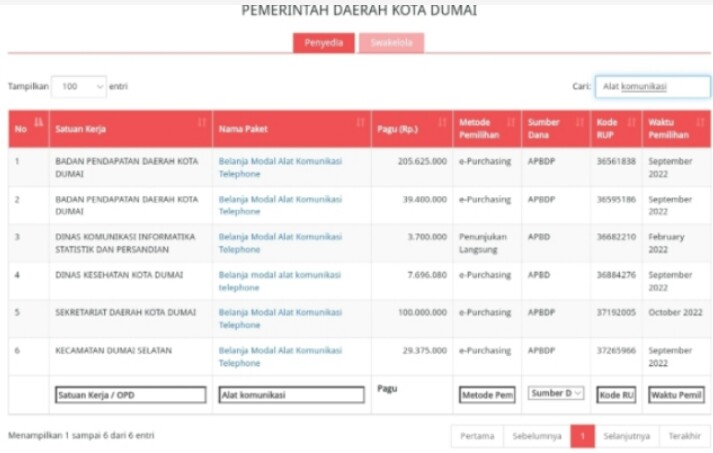 DUMAI, detak24.com - Pembelian enam paket alat komunikasi telepon di lima satuan kerja Pemko Dumai menelan hingga ratusan juta. Anggaran...