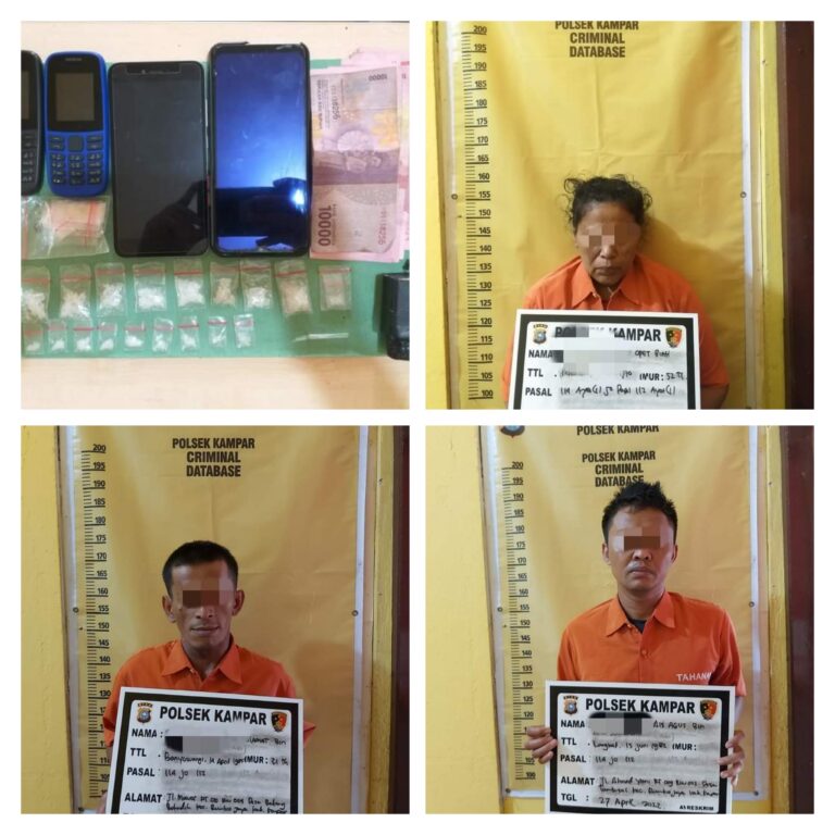 KAMPAR, detak24.com - Satu wanita dan 3 orang pelaku diduga pengedar narkotika Jenis Sabu-sabu berhasil diringkus Polsek Kampar, keempat pelaku...