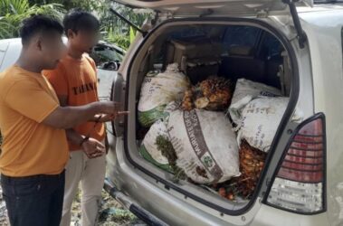 Selain hasil curian, polisi juga mengamankan satu unit mobil Toyota Kijang Innova warna silver metalik yang digunakan pelaku untuk mengangkut buah sawit tersebut. Kedua terduga pelaku masing-masing berinisial MSS (26) dan NPK (27), warga Kecamatan Tualang.