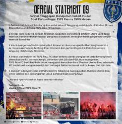 Dari akun instagram resmi @pspsriau, dikutip Ahad (25/09/22), akhirnya manajemen memberikan tanggapan mengenai insiden peristiwa saat pertandingan PSPS Riau melawan PSMS Medan.