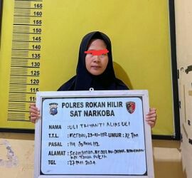 ROHIL, detak24com - Polisi cokok emak emak berhijab inisial UT (32) di Sedinginan Rohil. Tersangka ditangkap lantaran mengedarkan sabu. Ditresnarkoba...