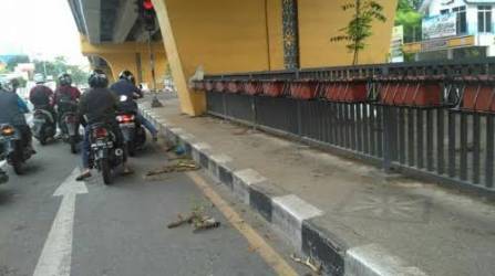 PEKANBARU, detak24com - Pagar besi pembatas di bawah Flyover Simpang Jalan Tuanku Tambusai dan Jalan Harapan Raya Pekanbaru banyak yang...