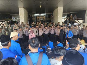 PEKANBARU, detak24com - Mahasiswa dari Badan Eksekutif Mahasiswa (BEM) Unri berdemo di Jalan Jendral Sudirman, tepatnya di depan gedung DPRD...