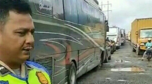Rohil, detak24com - Satlantas Polres Rohil laksanakan urai macet yang diakibatkan jalan rusak di Lintas Riau Sumut Km 7 Balam...