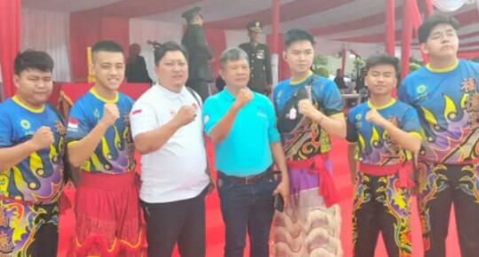 PEKANBARU, detak24com - Upacara penurunan bendera di HUT ke-78 Republik Indonesia dimeriahkan dengan penampilan tim barongsai dari Federasi Olahraga Barangsai...