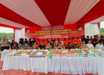 DUMAI, detak24com - Polda Riau mengungkap kasus peredaran narkotika partai besar di Dumai. Jumlah barang bukti diamankan yaitu 169 kg...