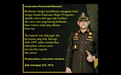 LAMPUNG, detak24com - Karier Kajari Pringsewu, Ade Indrawan SH MH kian bersinar. Sekitar dua tahun berdinas di Lampung, putra Melayu...