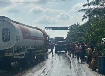 ROHIL, detak24com - Tabrak beruntun sejumlah truk di lintas Dumai-Rohil jadi viral. Warga pun berebutan mengutip tumpahan CPO dari tanki...