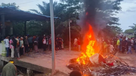 ROHIL, detak24com – Ratusan massa dilaporkan membakar rumah bandar sabu serta isinya di Panipahan, Rohil. Sebelumnya, demonstran menggeruduk kantor polisi setempat.